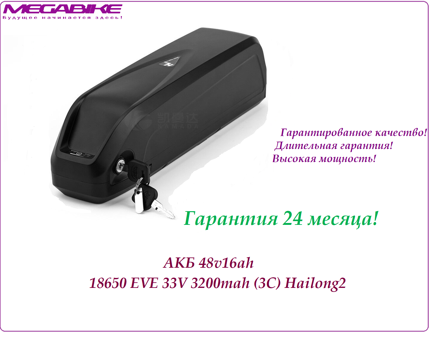 Аккумуляторная батарея на электро-велосипед АКБ 48v16ah Hailong2 (EVE 33V 3200mah 3C) в быстросъемном боксе Hailong2