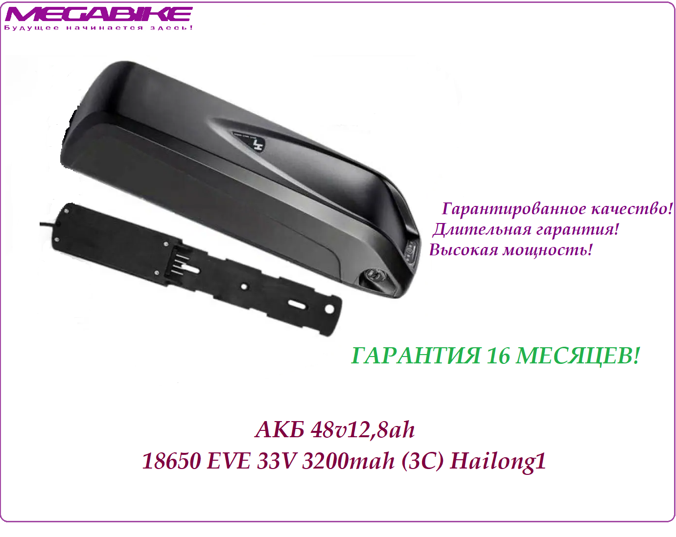 Аккумуляторная батарея на электро-велосипед АКБ 48v12,8ah Hailong1 (EVE 33V 3200mah 3C) в быстросъемном боксе Hailong1