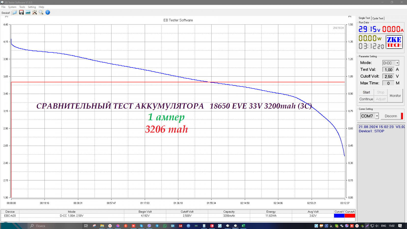 Так же вы можете ознакомится с результатами теста аккумуляторов 18650 EVE 33V 3200mah (3С) по ссылке: