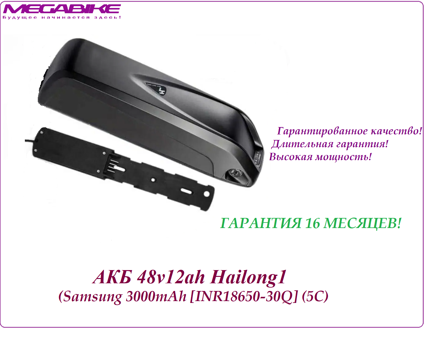 Аккумуляторная батарея на электро-велосипед АКБ 48v12ah Hailong1 5С (SAMSUNG 30Q 3000 mah) в быстросъемном боксе Hailong1