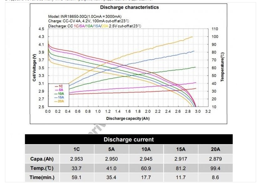 Так же вы можете ознакомится с результатами теста аккумуляторов 18650 SAMSUNG 30Q 3000 mah (5С) по ссылке: