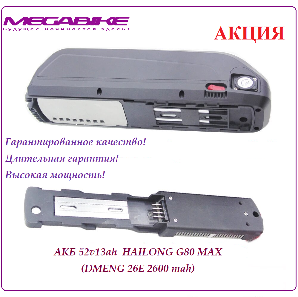 При покупке в рассрочку АКБ 52v13ah HAILONG G80 MAX (DMENG 26E 2600 mah) +5%
