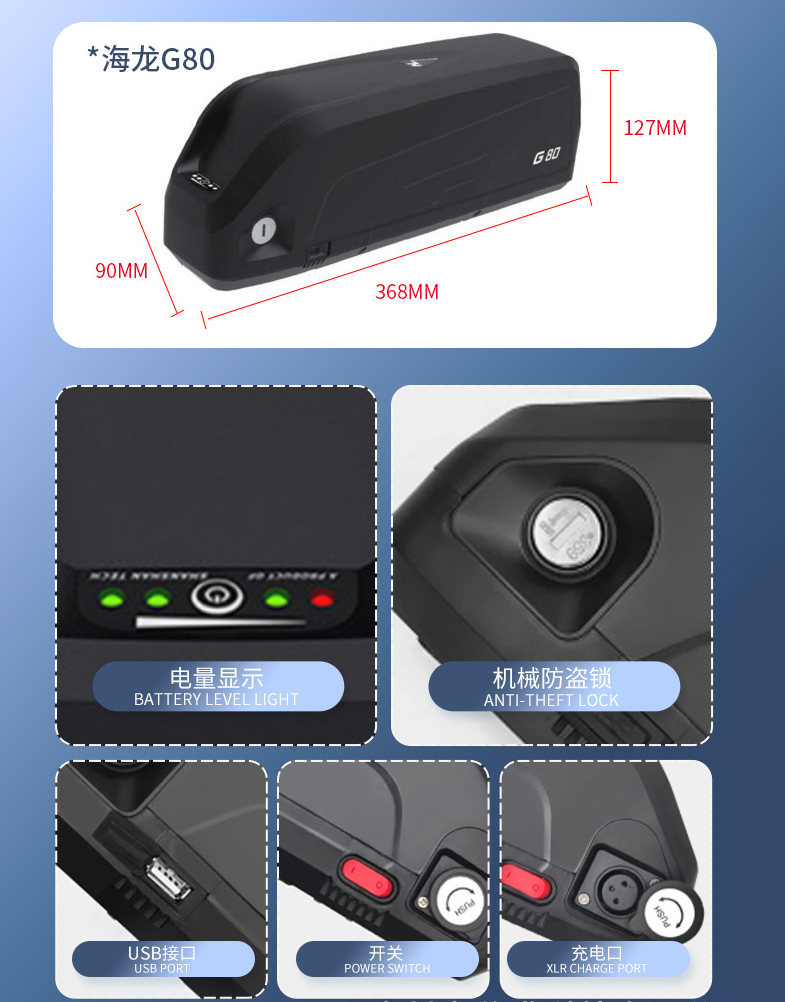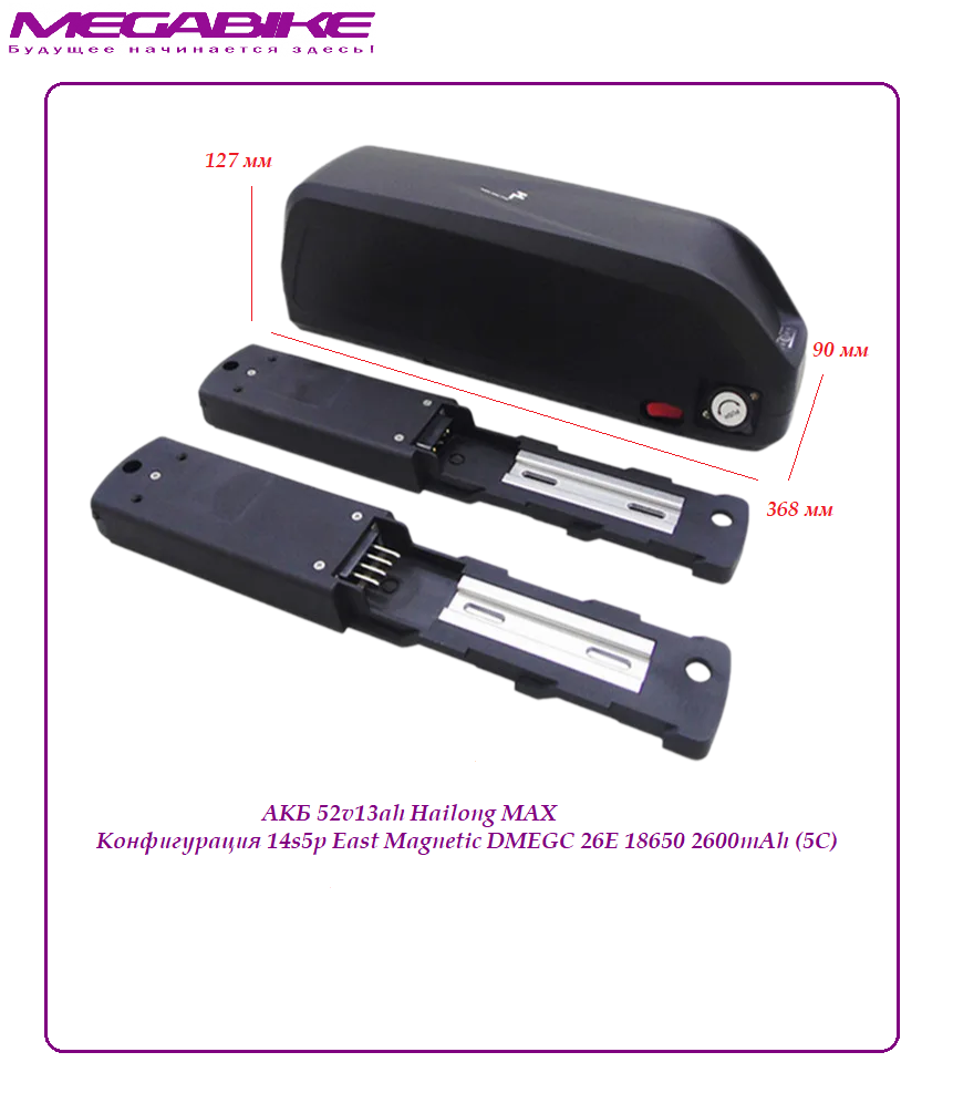 Аккумуляторная батарея на электро-велосипед 52v13ah HAILONG G80 MAX (DMENG 26E 2600 mah) в быстросъемном боксе HAILONG G80 MAX