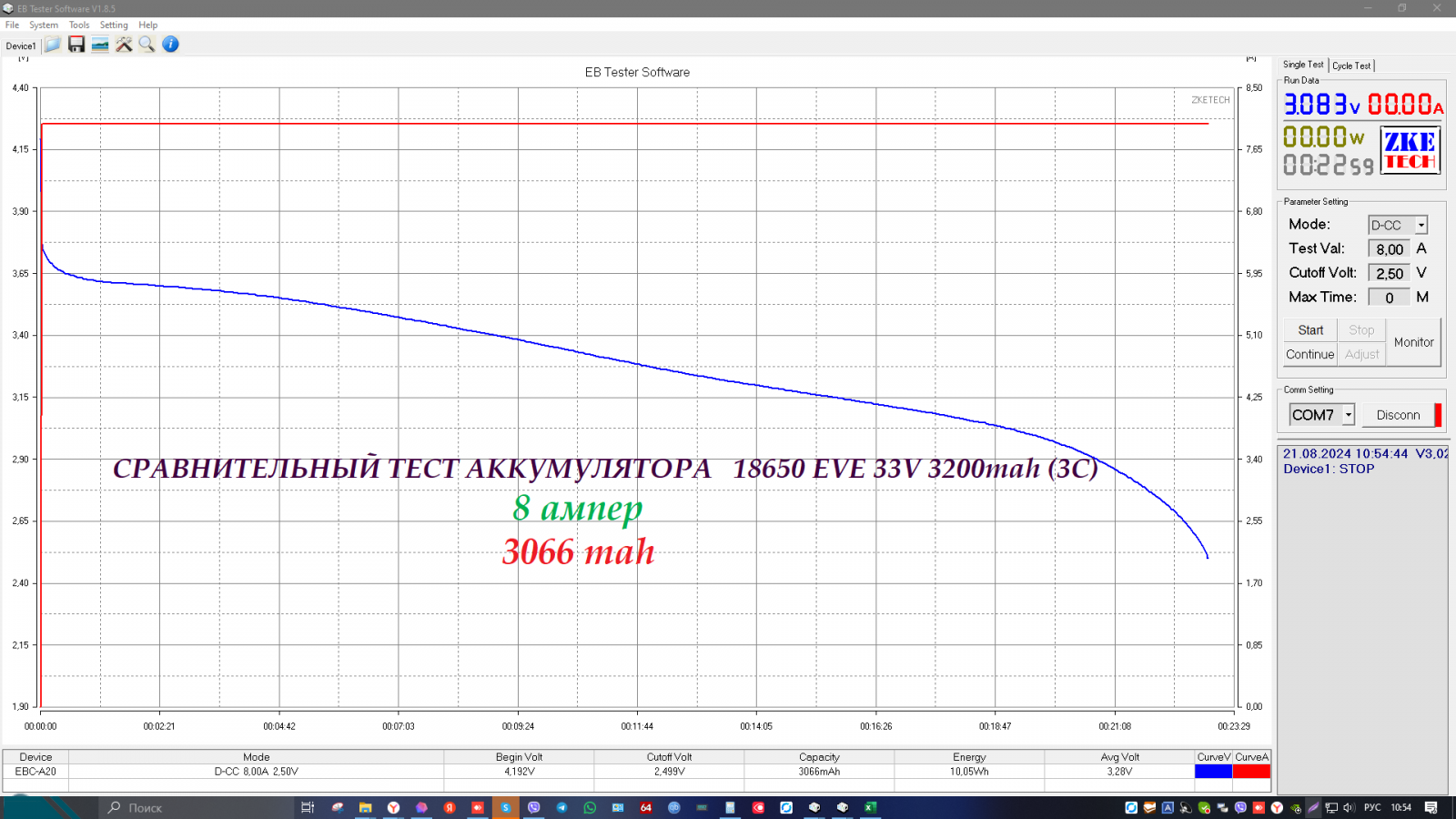 Так же вы можете ознакомится с результатами теста аккумуляторов 18650 EVE 33V 3200mah (3С) по ссылке: