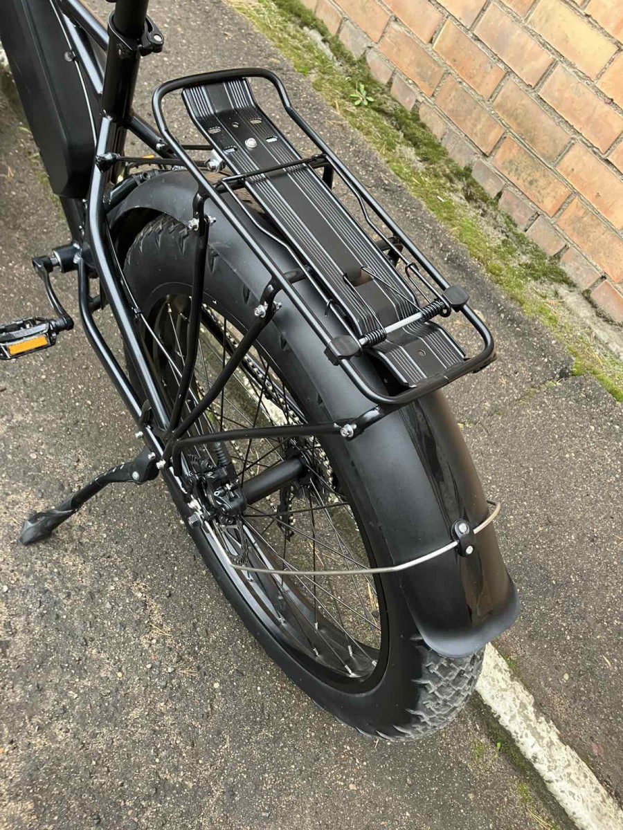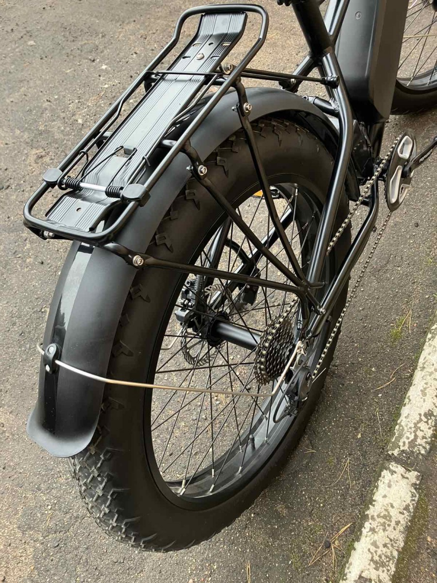 На электровелосипеде установлены полноразмерные крылья и усиленный багажник до 25кг.