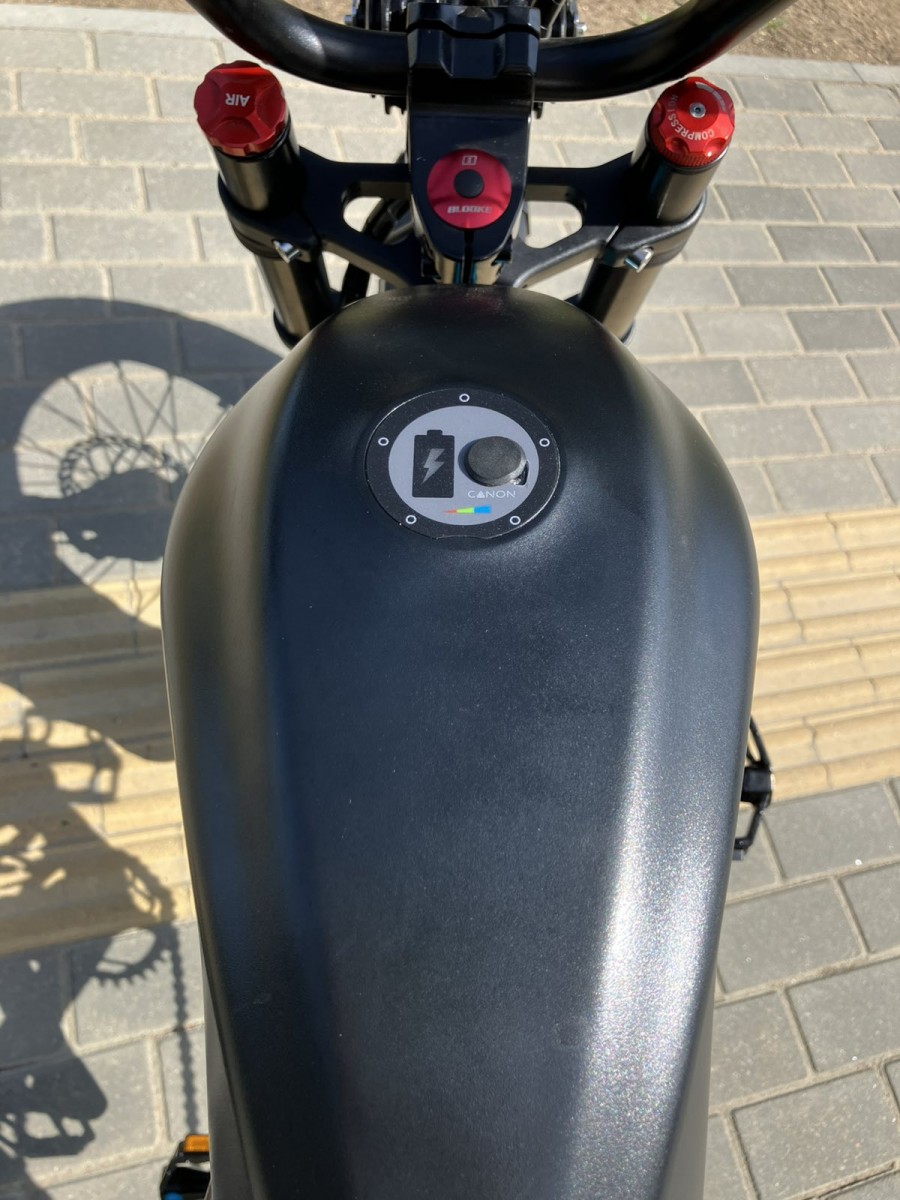 Первая аккумуляторная батарея Li-nmc 52v30ah собрана в конфигурации 14s6p на базе ячеек Panasonic 21700T 5000mah (5С) в футуристичном быстросъемном боксе в виде бака с зарядным устройством 58,8v2a в комплекте.