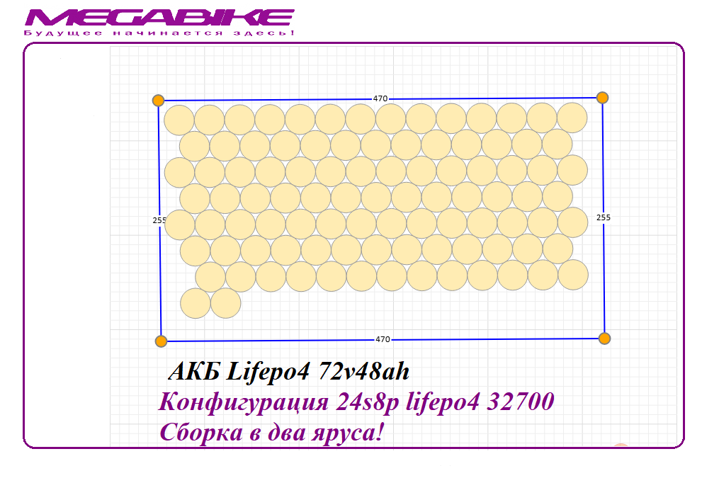 Батарея собрана из новых качественных аккумуляторов 3,2v (GRADE A) А. (Конфигурация 24s8p- 192 ячейки Аккумулятор 32700 LiFePO4 3,2v 6000мАh (5C)