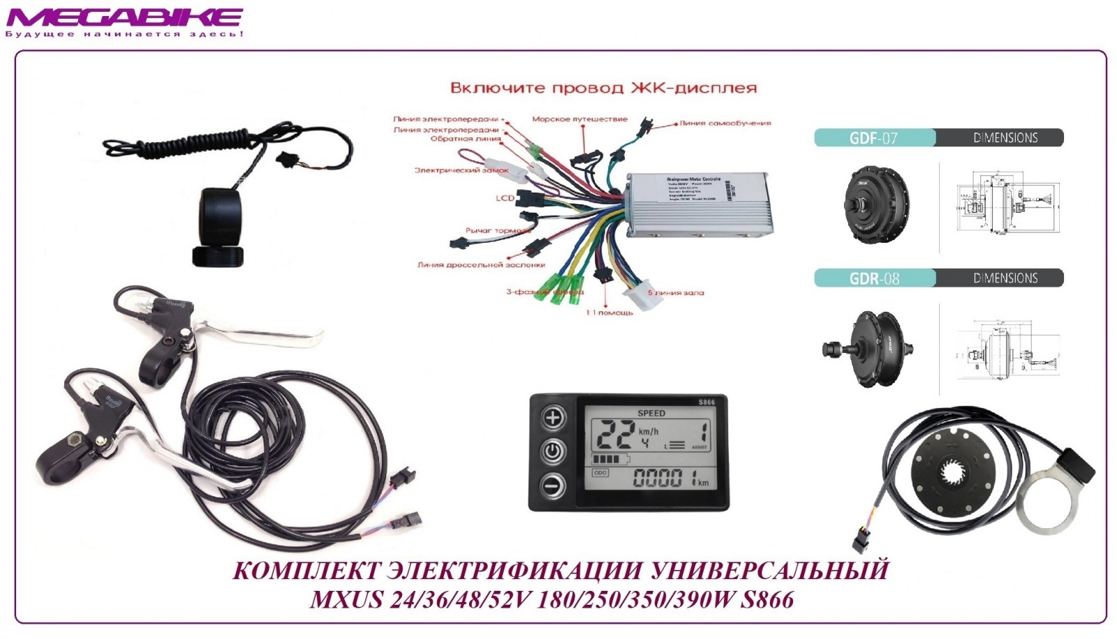 КОМПЛЕКТ УНИВЕРСАЛЬНЫЙ СТАНДАРТ MXUS 24/36/48V 250W/350W LSD S866