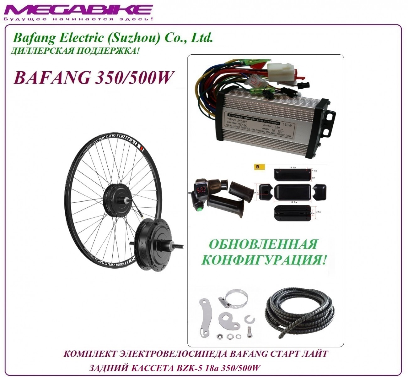 КОМПЛЕКТ ЭЛЕКТРОВЕЛОСИПЕДА BAFANG СТАРТ ЛАЙТ ЗАДНИЙ КАССЕТА BZK-5 36/48v 18а 350/500W