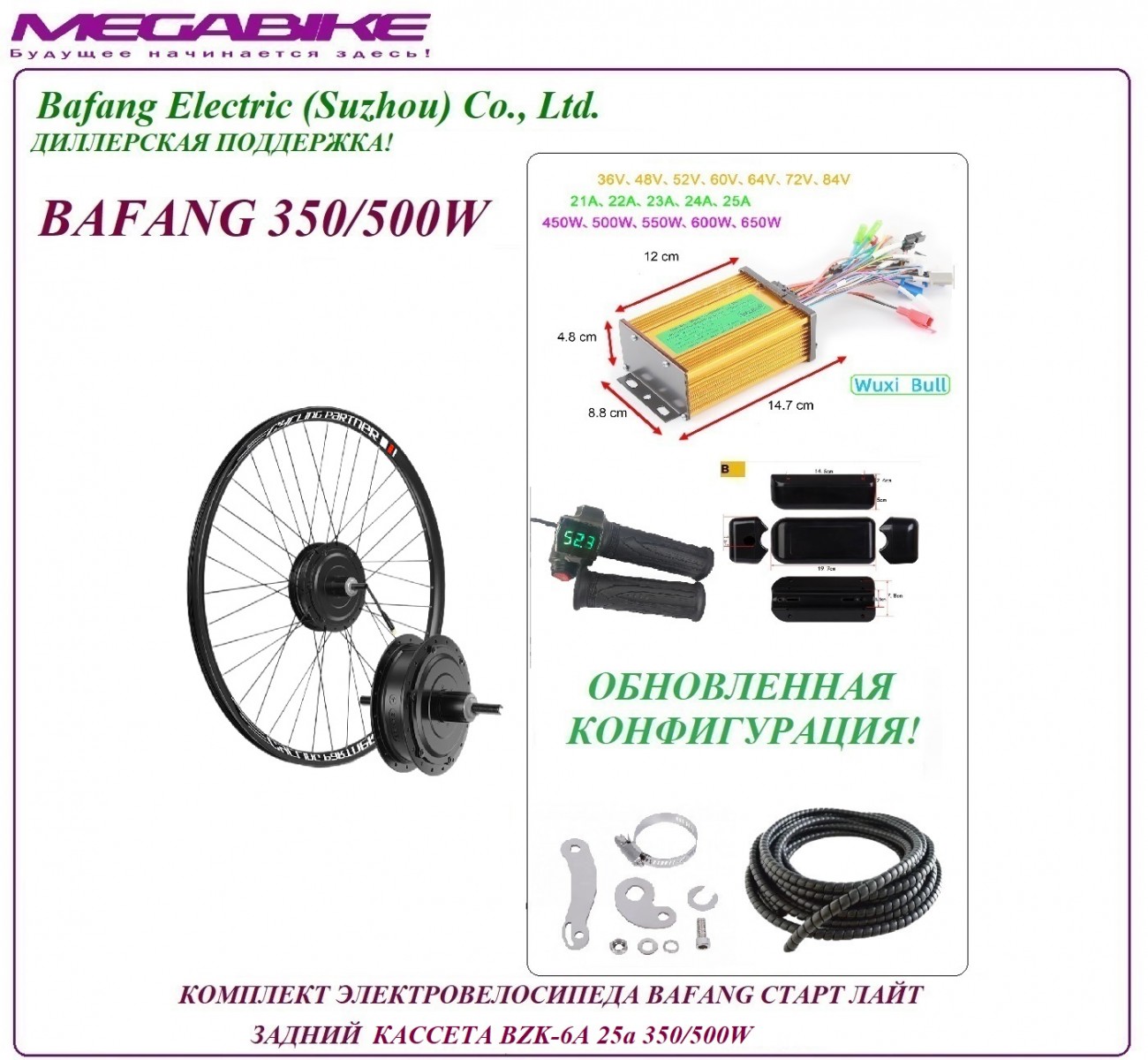 КОМПЛЕКТ ЭЛЕКТРОВЕЛОСИПЕДА BAFANG СТАРТ ЛАЙТ ЗАДНИЙ КАССЕТА BZK-6A 36/48v 25а 350/500W