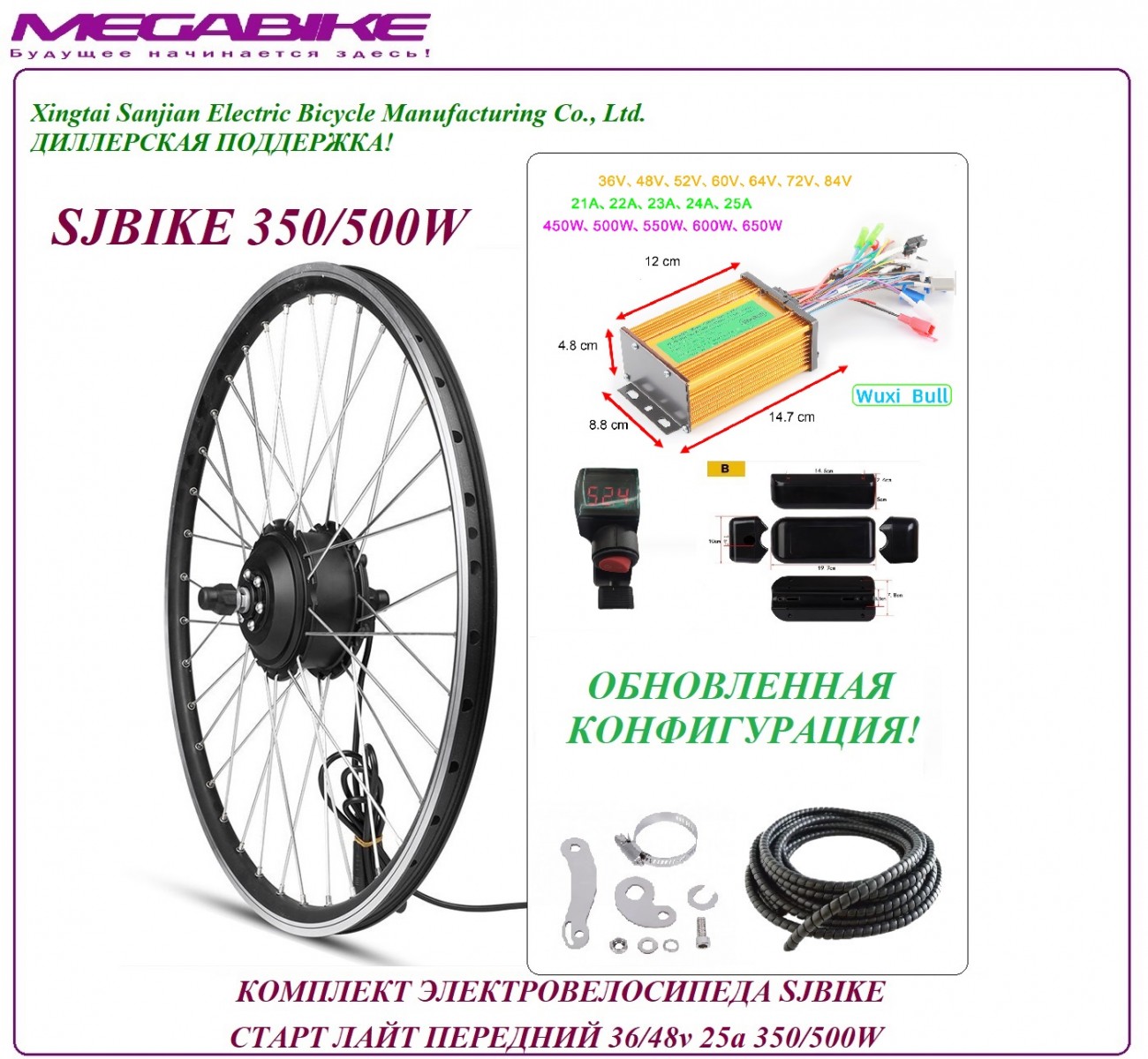 КОМПЛЕКТ ЭЛЕКТРОВЕЛОСИПЕДА SJBIKE СТАРТ ЛАЙТ ПЕРЕДНИЙ P-1A 36/48v 25а 350/500W