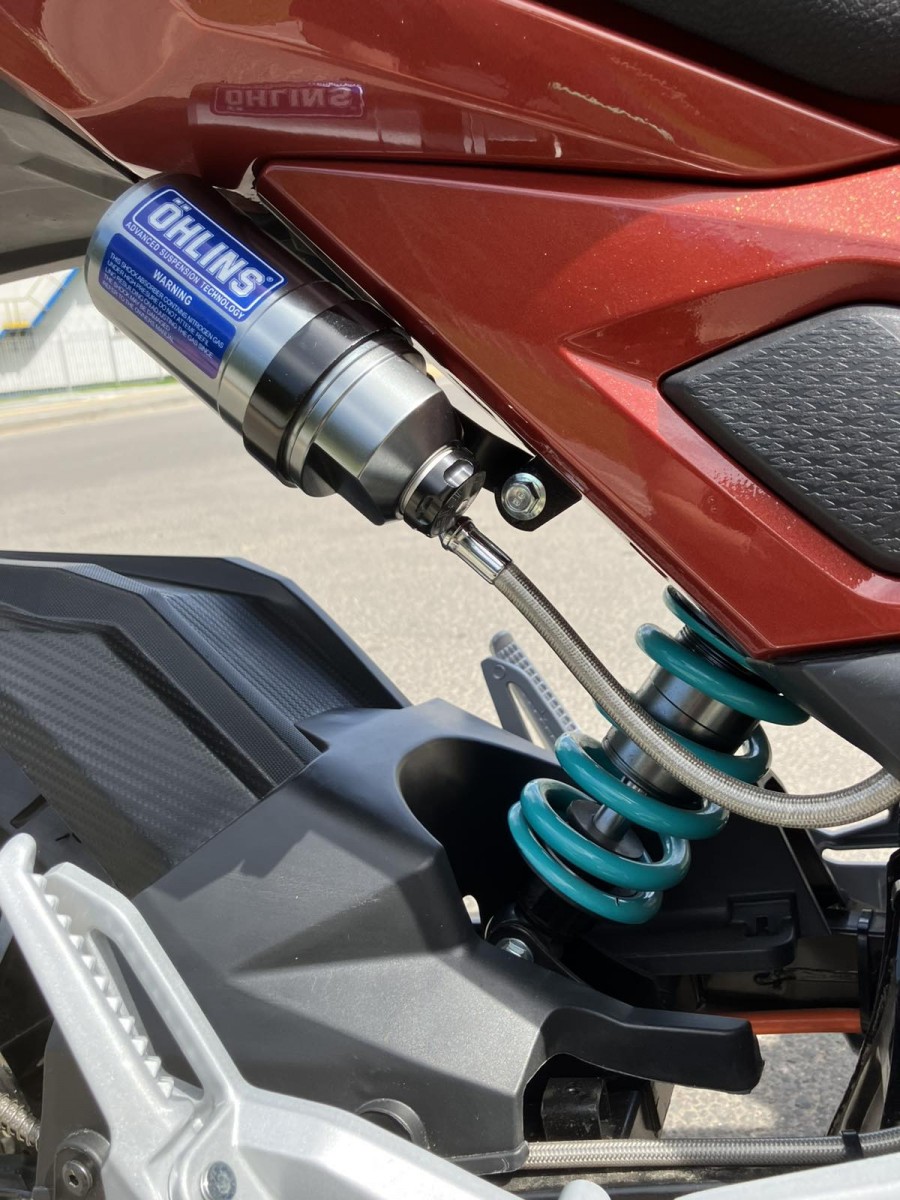 Удобство и комфорт обеспечивает пружинно-масляный, профессиональный задний амортизатор OHLINS. Полная адаптация во время езды по любым поверхностям, благодаря системе регулировок сжатия и отскока.